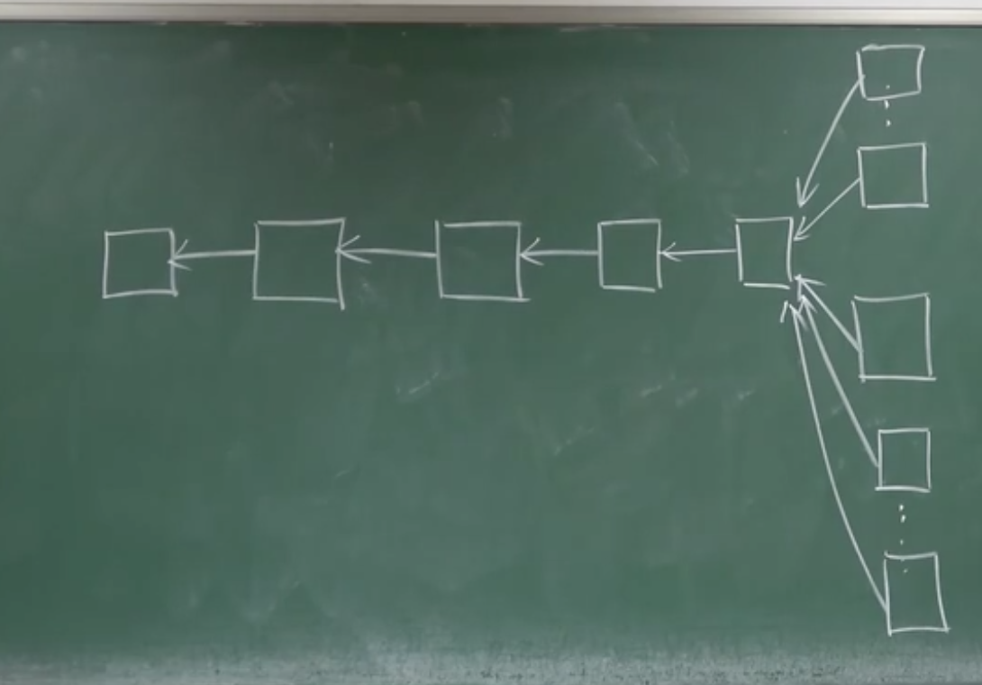 - 第一种是链接块的hash指针(即前一个区块的hash指针)