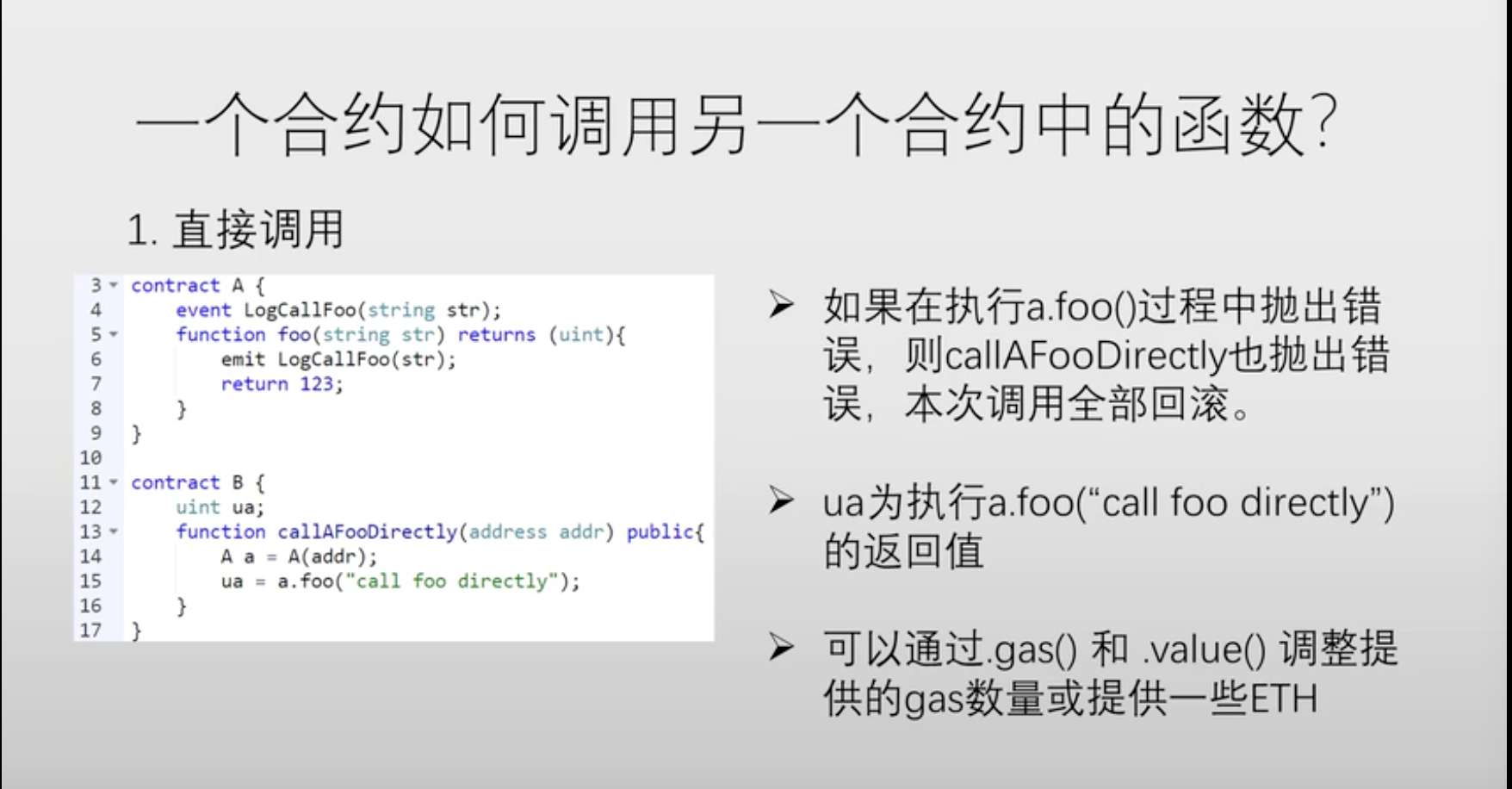 - call:不会导致连锁式回滚,call的方式转账会把剩余的汽油全部发送过去