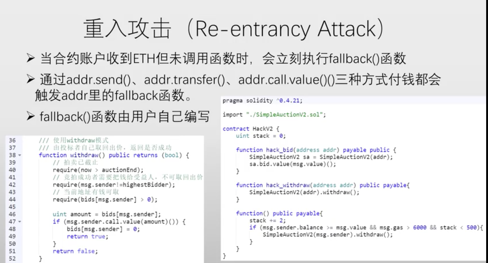 无法防止重入攻击(Re-entrancy Attack)